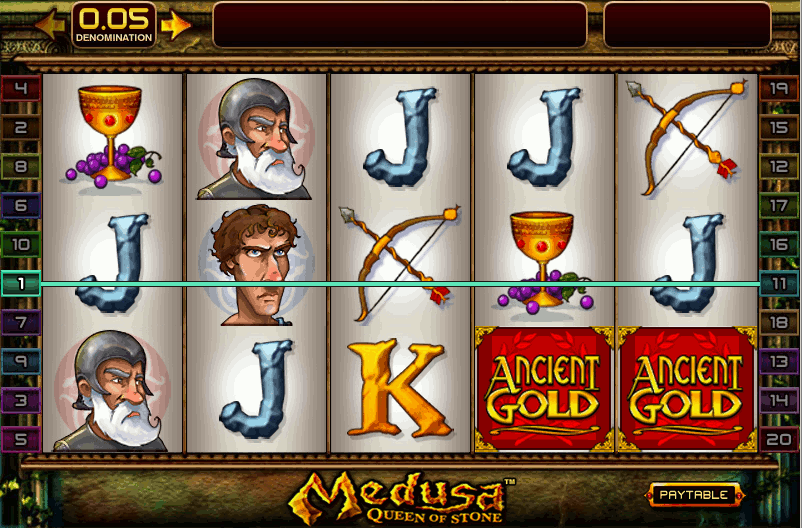 | Medusa, seit Novemeber 2010 in CasinoClub zu Spielen. Der 20 Leiner wird mit Linien Einsatzt von 0,05 €uro Gespielt. 3 Ancient Gold Lösen die 10 Freespins aus und wird mit bis zu 5 Extra Wild Symbolen Ausgeführt. Play Now