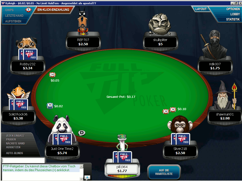|  | Full Tilt Poker Tisch ist in 2 Varianten zu wählen unter Einstellungen wie eine Figur die Karakterisch zu einen Passt |